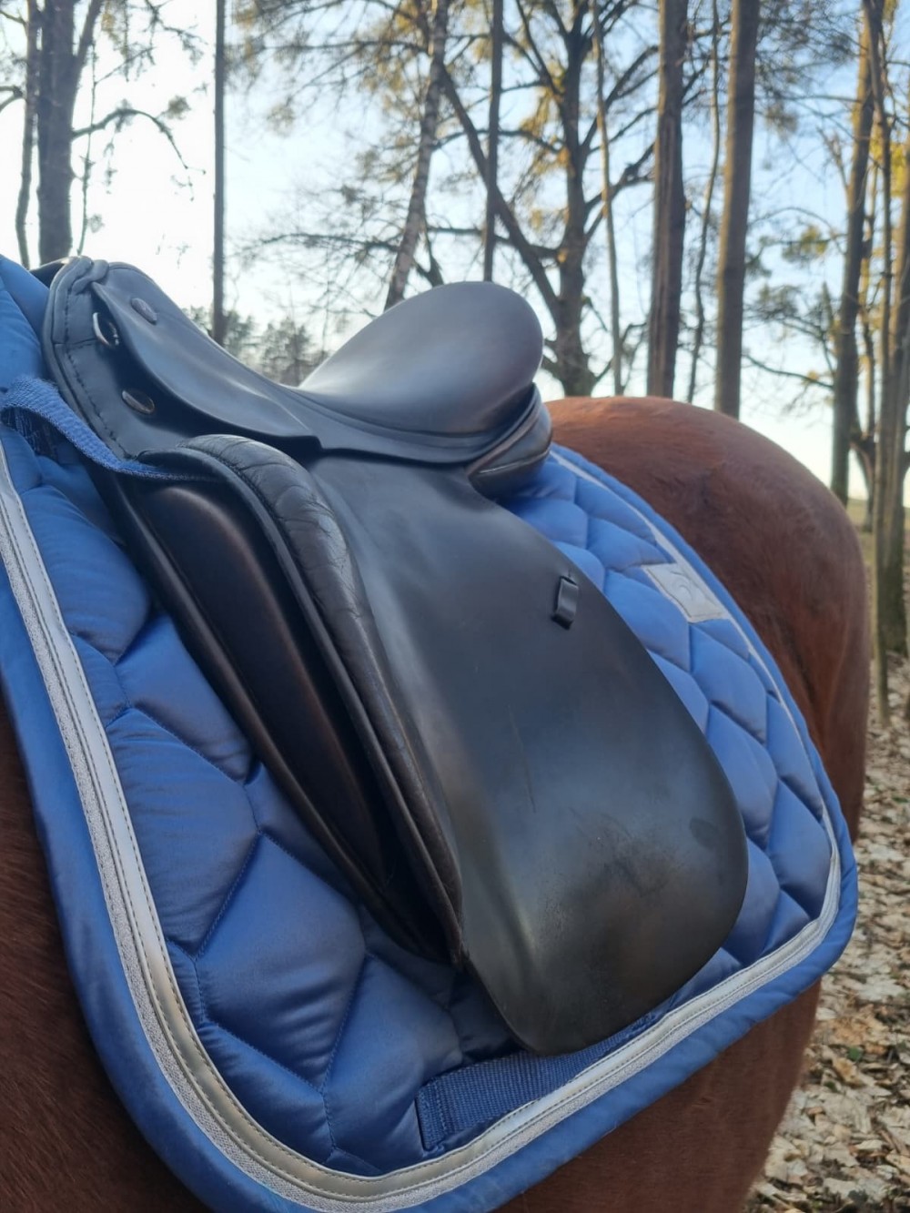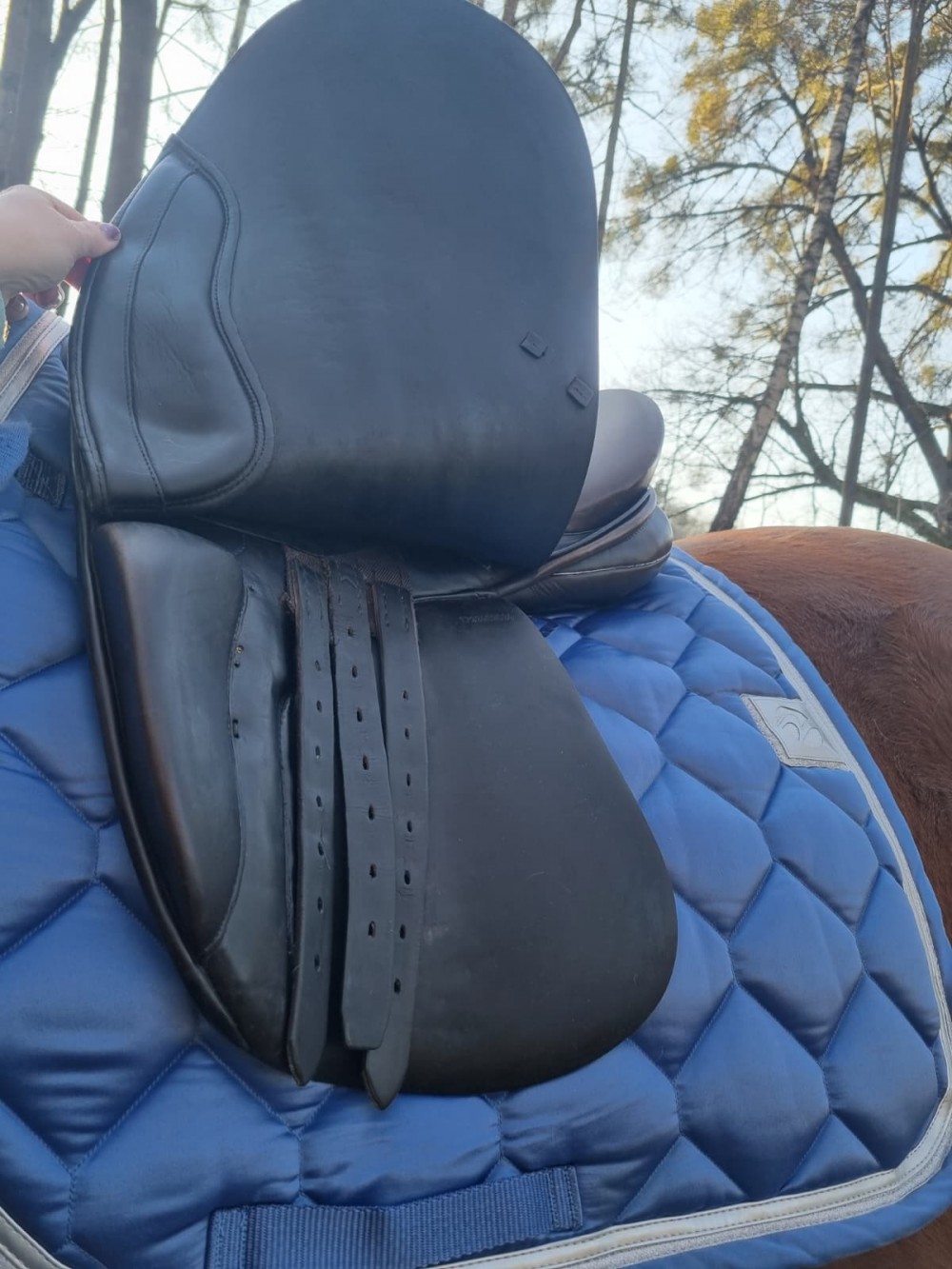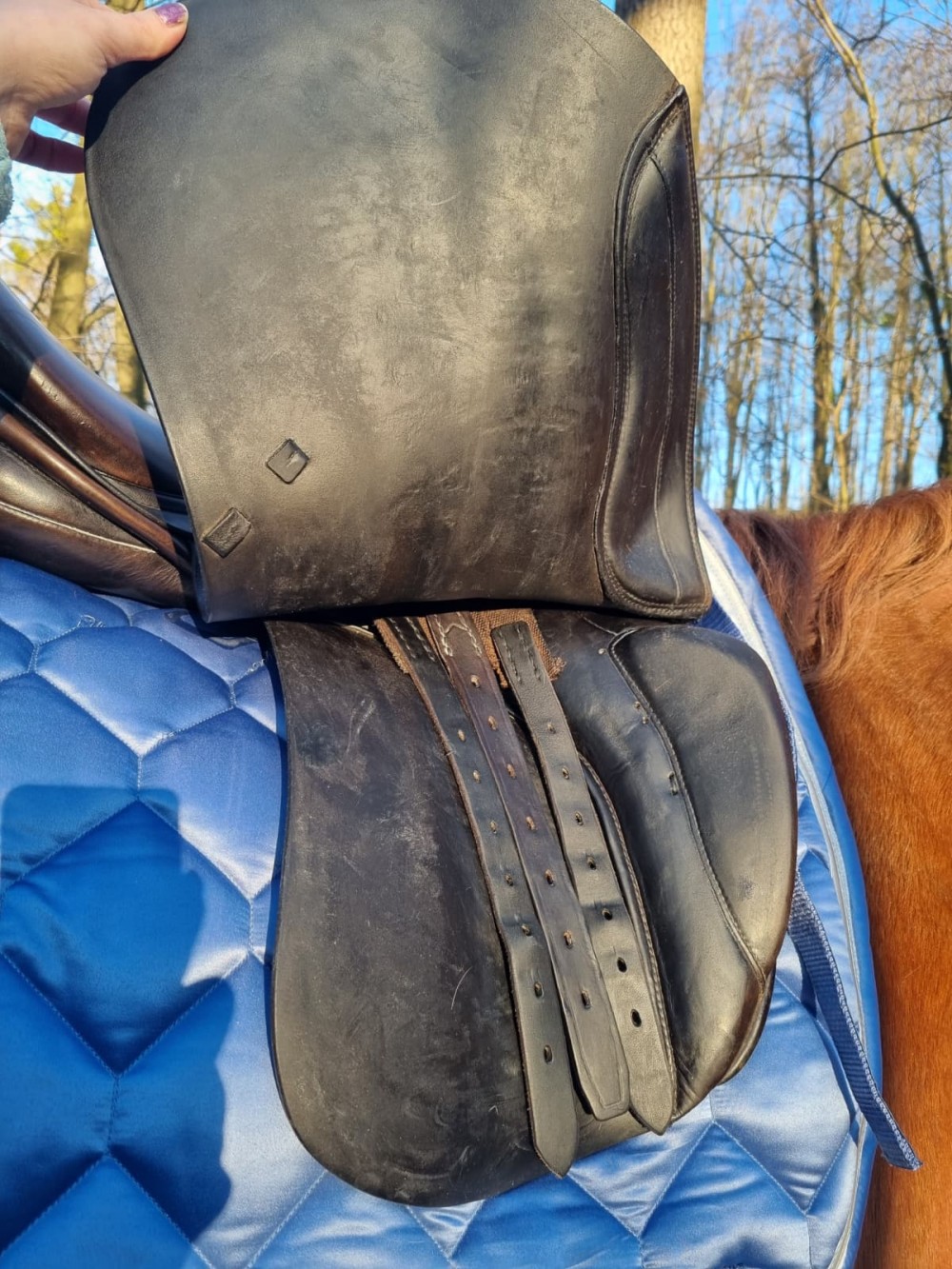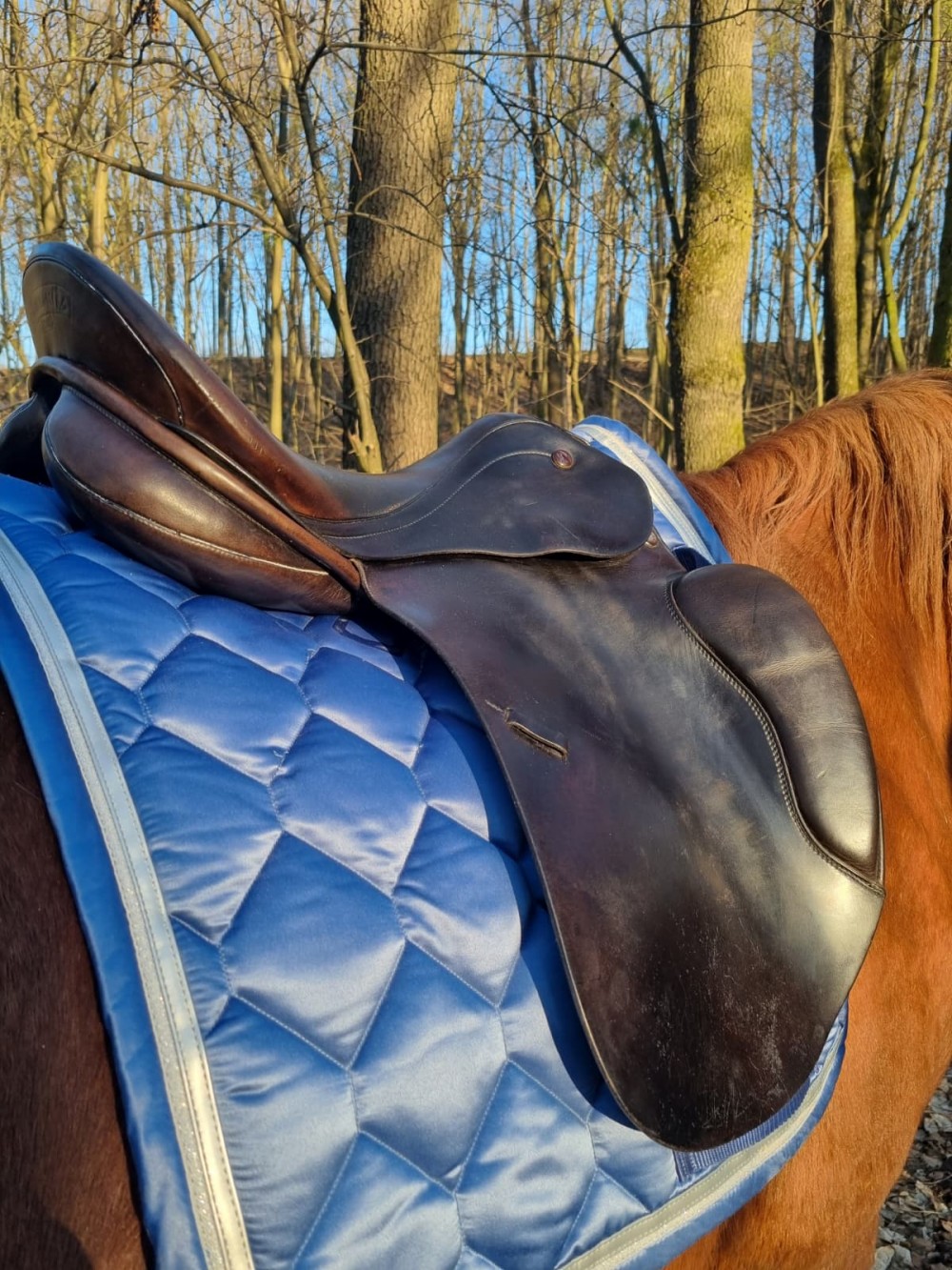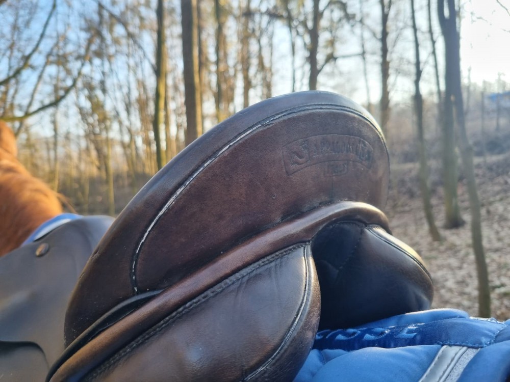 Drezurní (tmavě hnědé) sedlo Prestige komora 3/ posedlí 17, řemeny a vše v pořádku, na vlně. Krásně drží sed. Vada na posedlí zohledněna v ceně (dle sedlářky stačí lepení v hodnotě 500 Kc). Přes rok nevyužívané (důchod koně). Možno dodat nové řemeny v barvě sedla a nové třmeny (+ 500 Kč). Zaslání DPD na náklady kupujícího, balím pečlivě. Se zkoušením cena 11 tis.