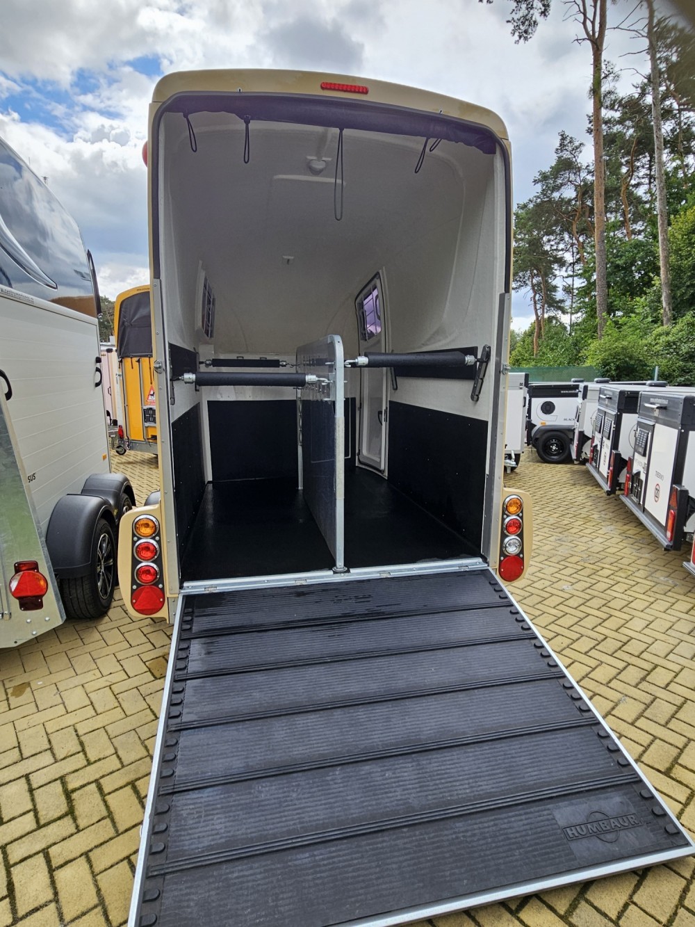 Největší přívěs pro dva koně HUMBAUR MAXIMUS, nový. Poslední kus tohoto modelu. Disponuje obrovskou sedlovnou s výsuvným držákem, novým panik systémem, polohováním na menší a větší koně, ALUBICOMP podlahou, protiokopovými deskami na stěnách, 15“ koly, celková hmotnost 2400 kg. Přívěs je celolaminátový , ale v boku má speciální umělé materiály, které jsou pevné, ale neprohnijí. Možnost odpočtu DPH, Sleva -30 000 Kč, akční cena : 320 000,-Kč + DPH včetně ALU KOL, tel: 608 072 300